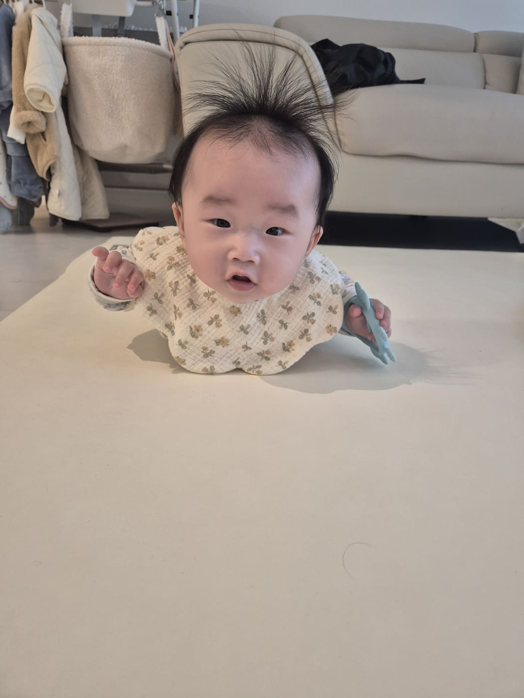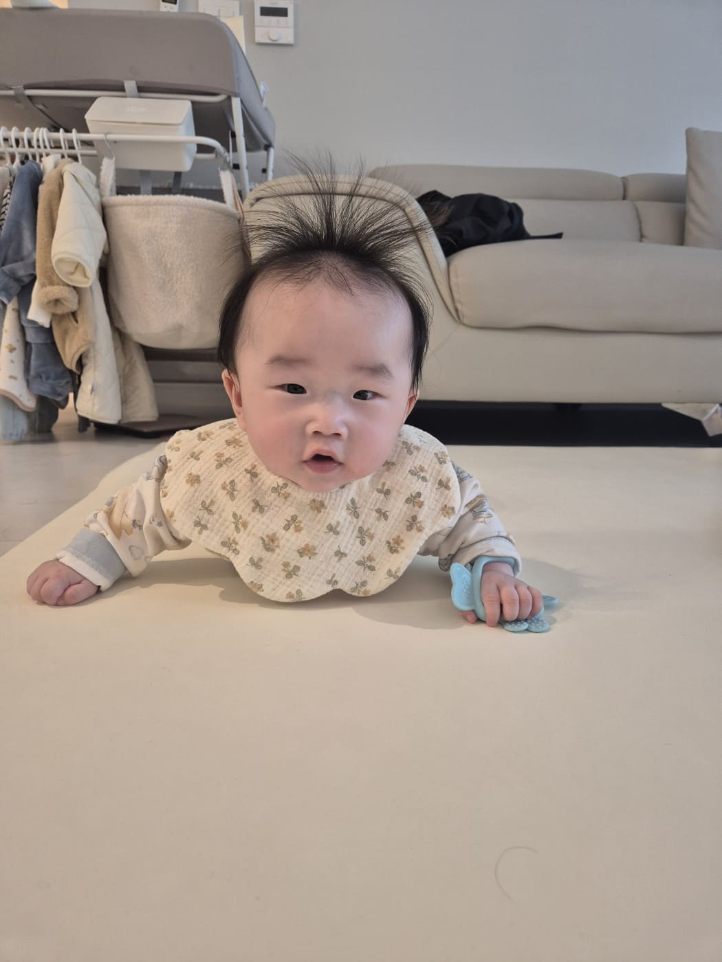 아기마다 침 분비 패턴이 천차만별이기 때문입니다. 실제로 보건복지부의 2023년 영유아 발달 조사에서도 같은 월령 아기들 사이에서 타액 분비량이 최대 5배까지 차이 난다는 결과가 나왔습니다(출처: 보건복지부). 어떤 아기는 돌이 지날 때까지 턱받이가 거의 필요 없는 반면, 선우처럼 생후 100일부터 하루 10장씩 갈아치워야 하는 경우도 있습니다. 그러니 턱받이 구매는 아이가 실제로 침을 흘리기 시작하는 시점, 즉 생후 2~3개월 이후에 아이의 상태를 보고 결정하는 게 현명합니다.