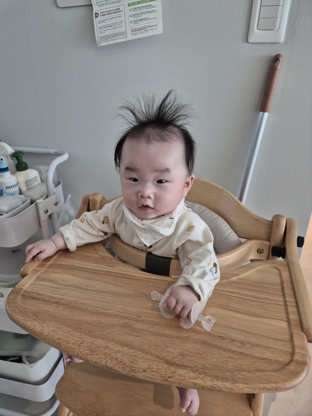제 아이의 경우 생후 5개월 10일경부터 하이체어 사용을 시작했는데, 처음에는 옆구리와 등 뒤에 얇은 천 기저귀를 돌돌 말아 끼워줬습니다. 아기가 중심을 잡는 데 도움을 주기 위해서였죠. 그렇게 2주 정도 지나니 보조 쿠션 없이도 스스로 앉아 있는 시간이 점점 길어졌습니다. 일반적으로 6개월 이후에 하이체어를 사용하라는 조언이 많지만, 실제로는 아기의 발달 속도와 제품의 안전성을 기준으로 판단하는 게 더 정확합니다. 다만 한 번에 15분 이상 앉히는 건 어떤 경우에도 피해야 하며, 아기가 자꾸 옆으로 기울거나 불편해하는 신호를 보이면 즉시 사용을 중단해야 합니다.