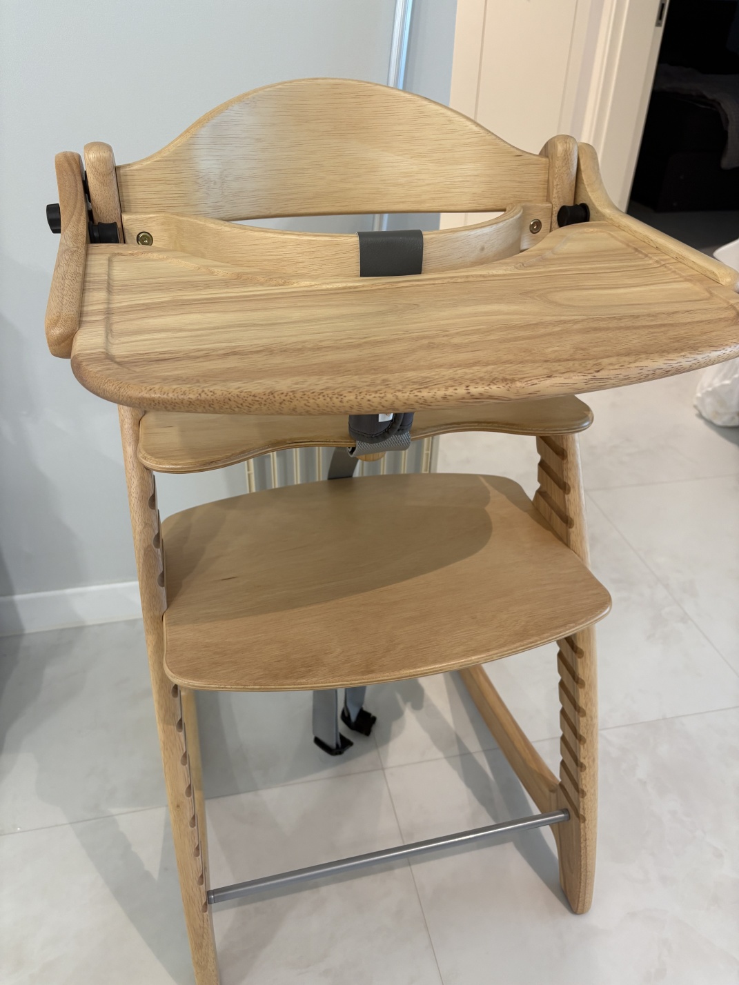 하지만 단점도 분명히 있습니다. 가장 신경 쓰이는 부분은 역시 아기의 척추 부담입니다. 아무리 인체공학적으로 설계된 의자라도 5개월 아기에게는 15분 이상 착석이 무리입니다. 제가 실수한 부분이 있었는데, 처음에는 30분 가까이 앉혀둔 적이 있었어요. 그날 저녁 아기가 유난히 보챘고, 다음 날 소아과에서 "허리에 무리가 갔을 수 있다"는 이야기를 들었습니다. 그 이후로는 타이머를 맞춰두고 정확히 10~12분만 앉히는 원칙을 지키고 있습니다. 또한 하이체어의 부피 문제도 무시할 수 없습니다. 저희 집은 25평대인데 식탁 옆에 하이체어를 놓으니 동선이 좁아져서 발가락을 여러 번 찧었어요. 특히 A자형 다리 구조는 바닥 면적을 많이 차지하니 구매 전에 집안 배치를 꼼꼼히 확인하는 게 중요합니다.